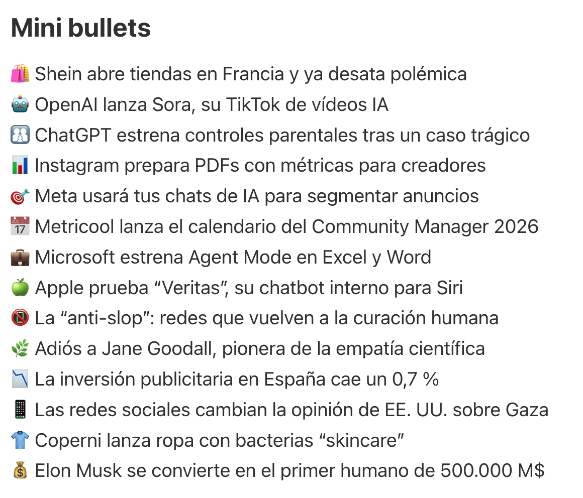 En Al Día recojo lo esencial para que entiendas no solo qué ha pasado, sino qué significa para tu marca o proyecto. Porque detrás de cada cambio en Instagram, TikTok o LinkedIn, hay una oportunidad, o un riesgo, que conviene ver con claridad.