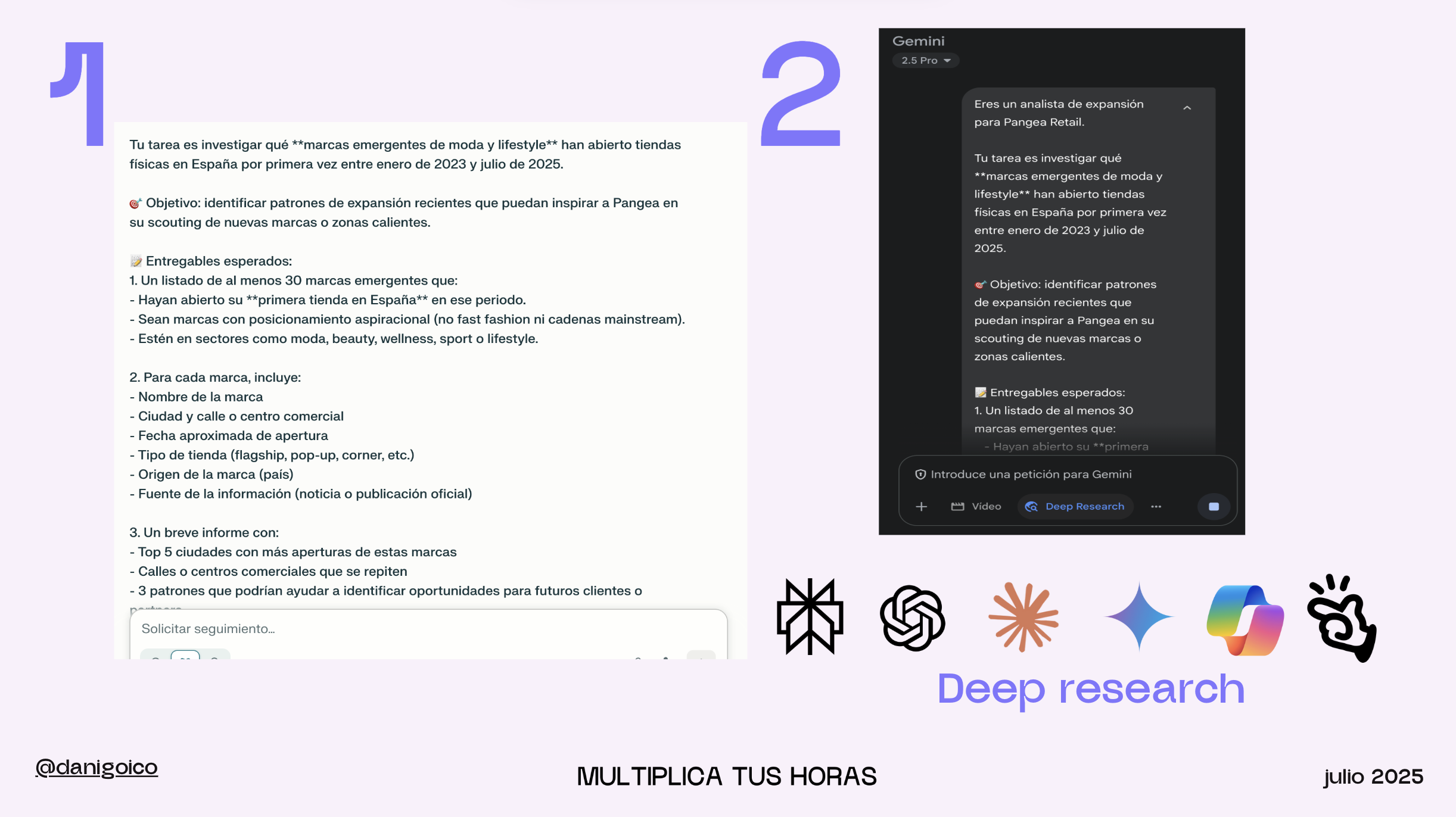 Se trabaja con las principales herramientas del mercado: ChatGPT, Gemini, Claude, Perplexity, Copilot y Manus, y al menos 15 más, además de recursos propios desarrollados por el equipo de Multiplica tus horas