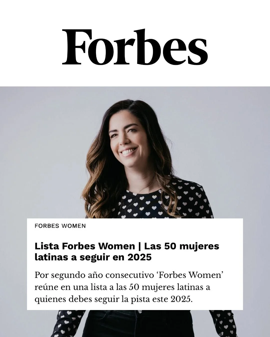 Seleccionada por Forbes 2024 y 2025 como una de las 50 latinas a seguir.